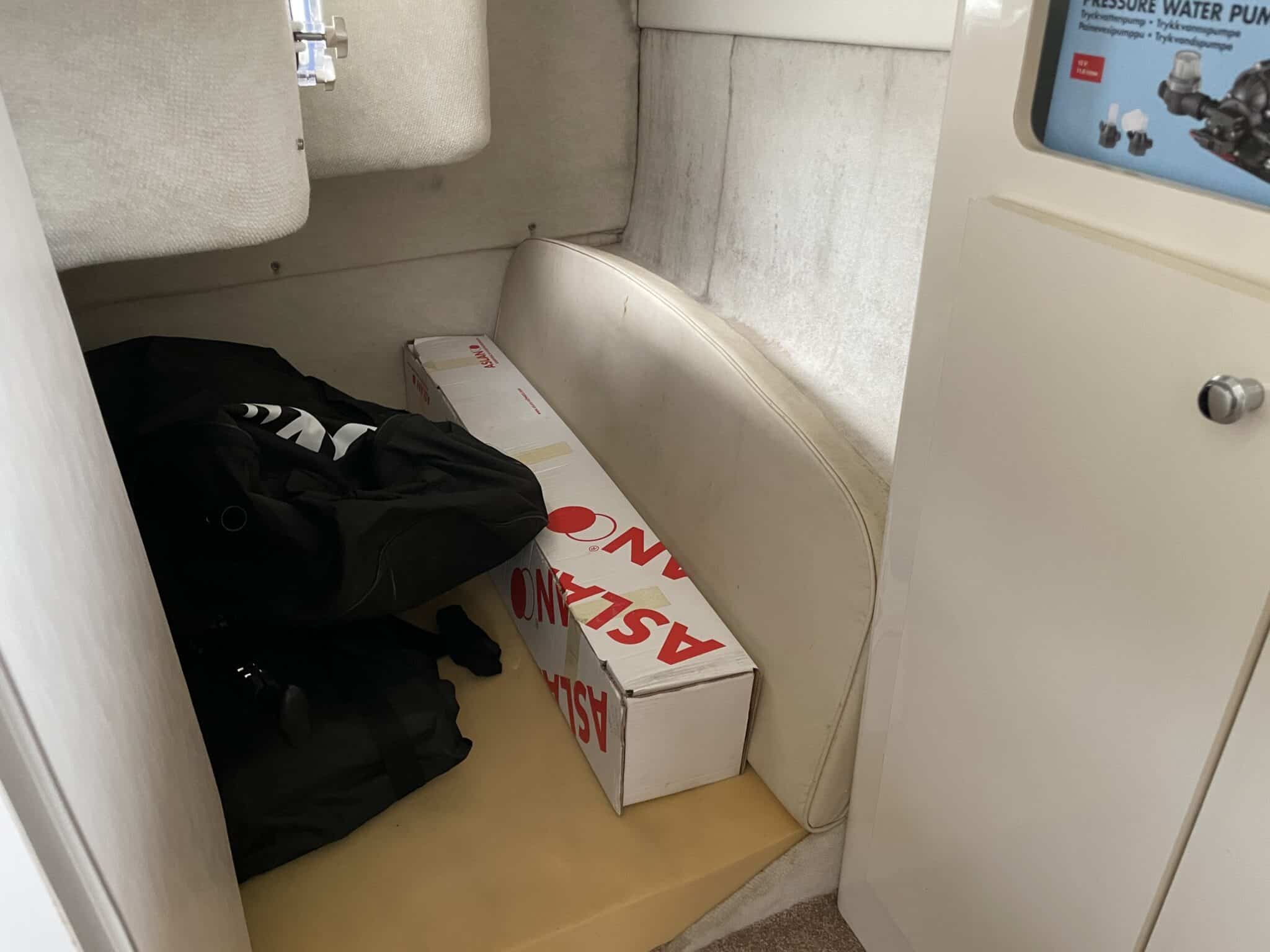 Agterkahyt under dørk med siddeplads og soveplads til 2.