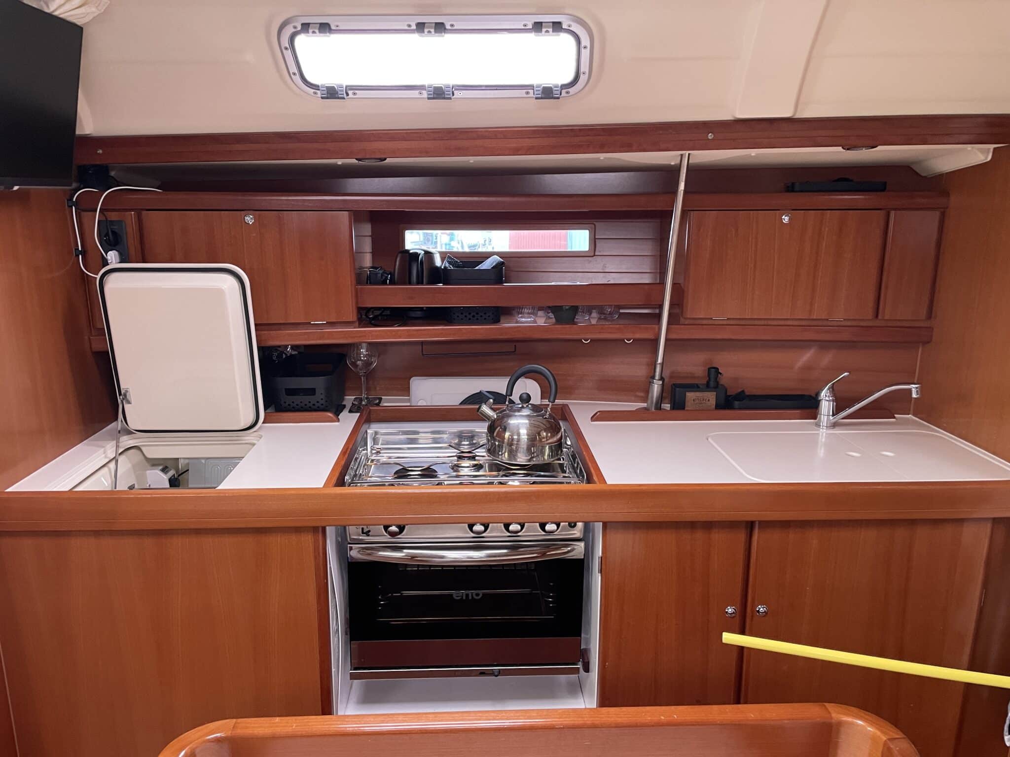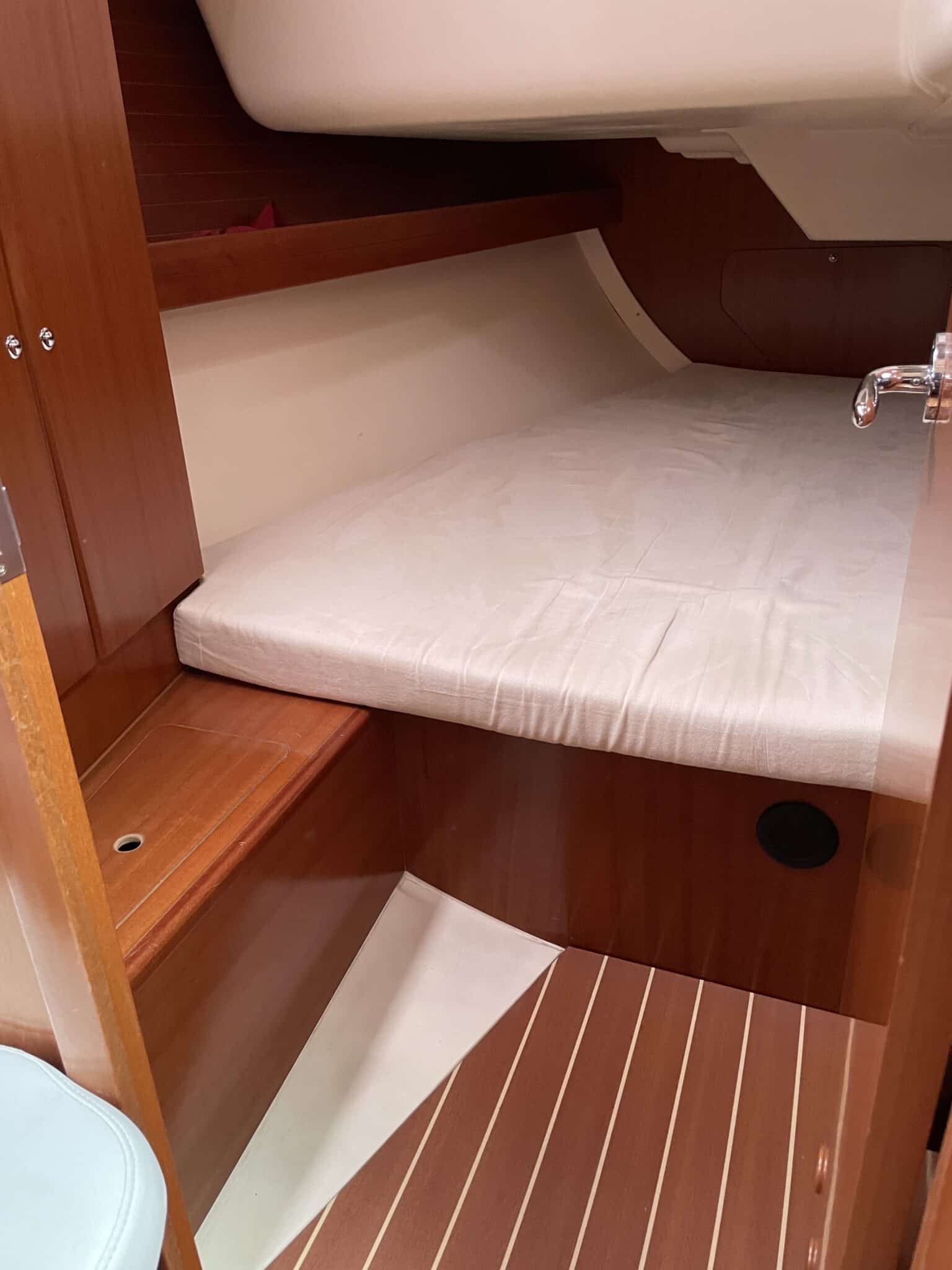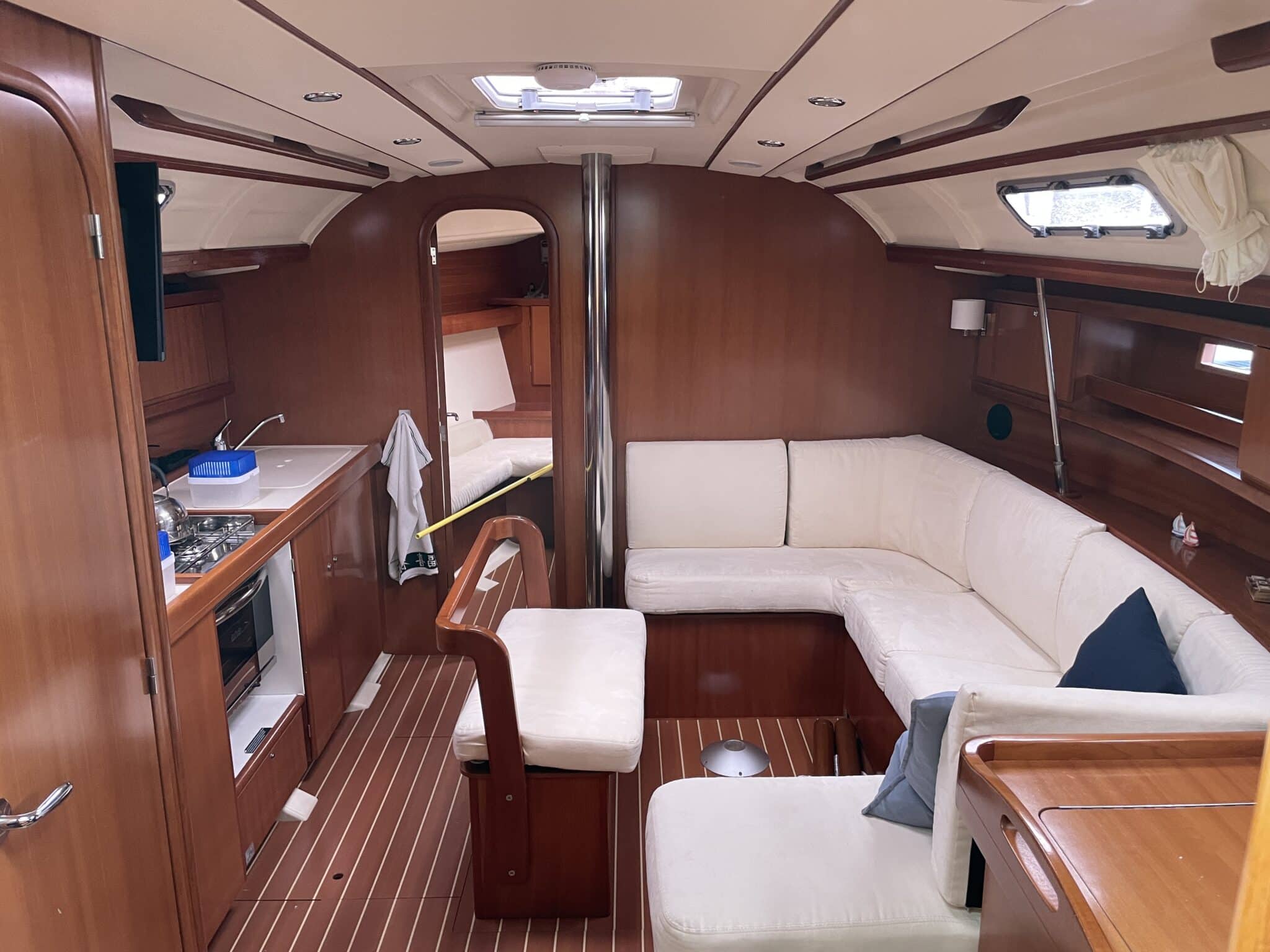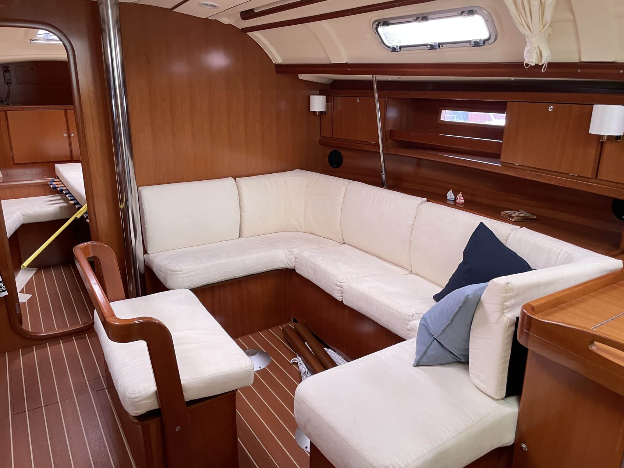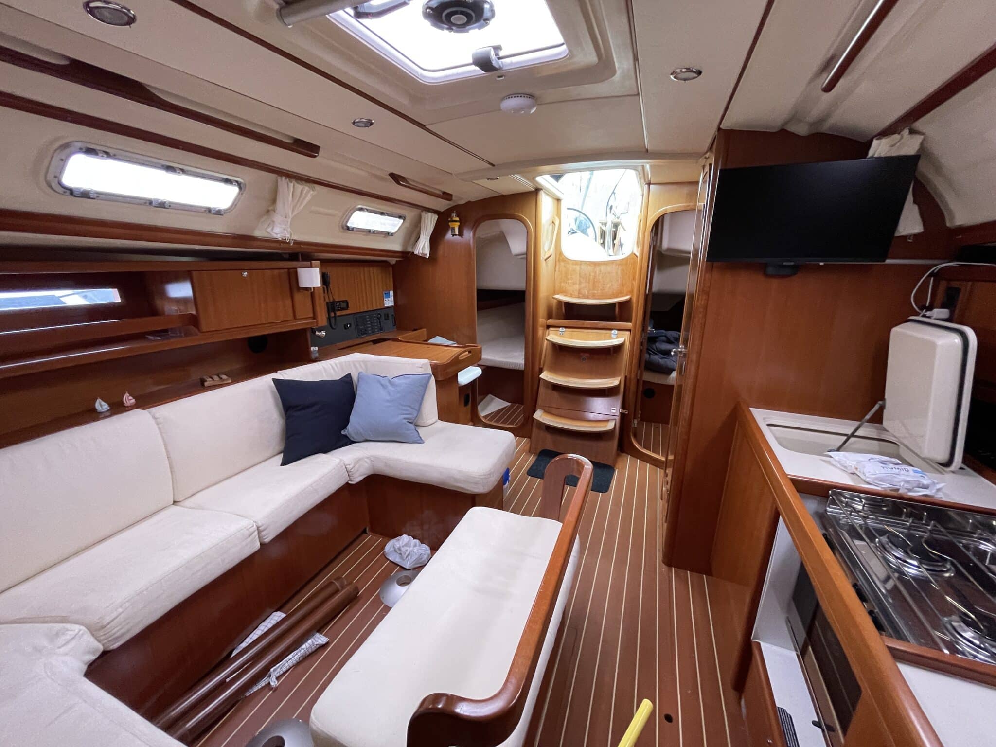 Dufour 385 GL er kendt for sin imponerende rummelighed og en ståhøjde på hele 200 cm – noget som gør opholdet ombord yderst behageligt.