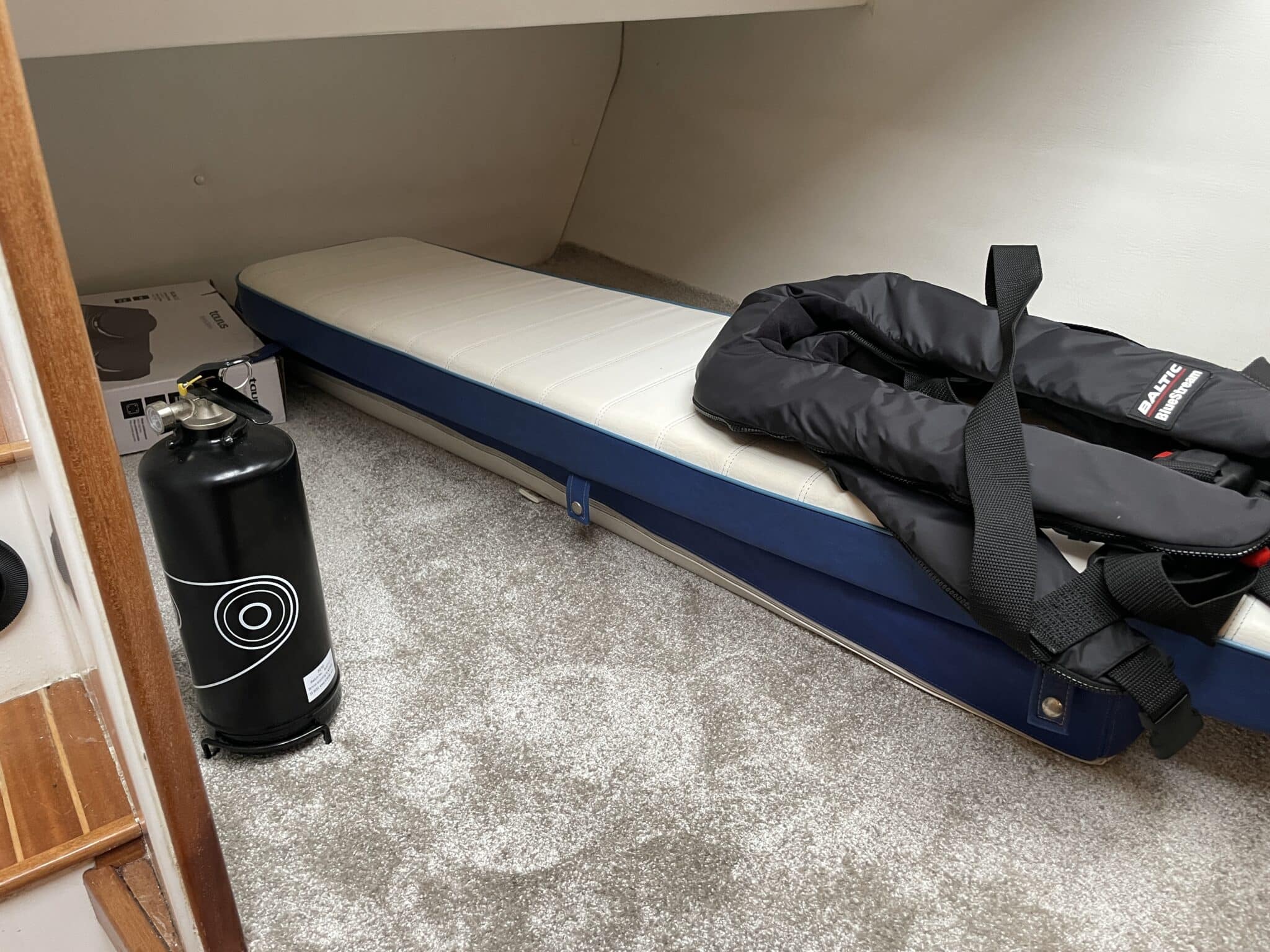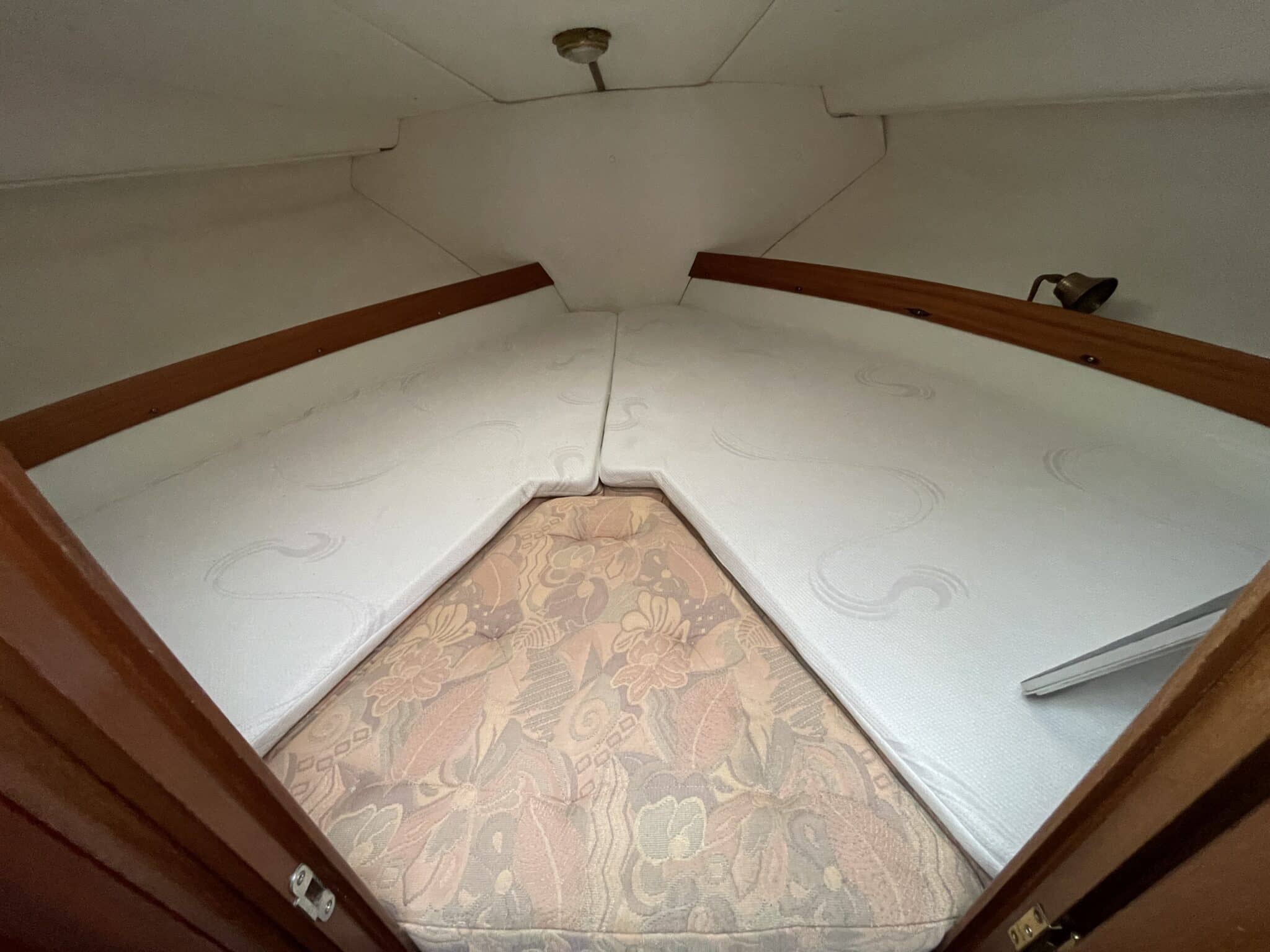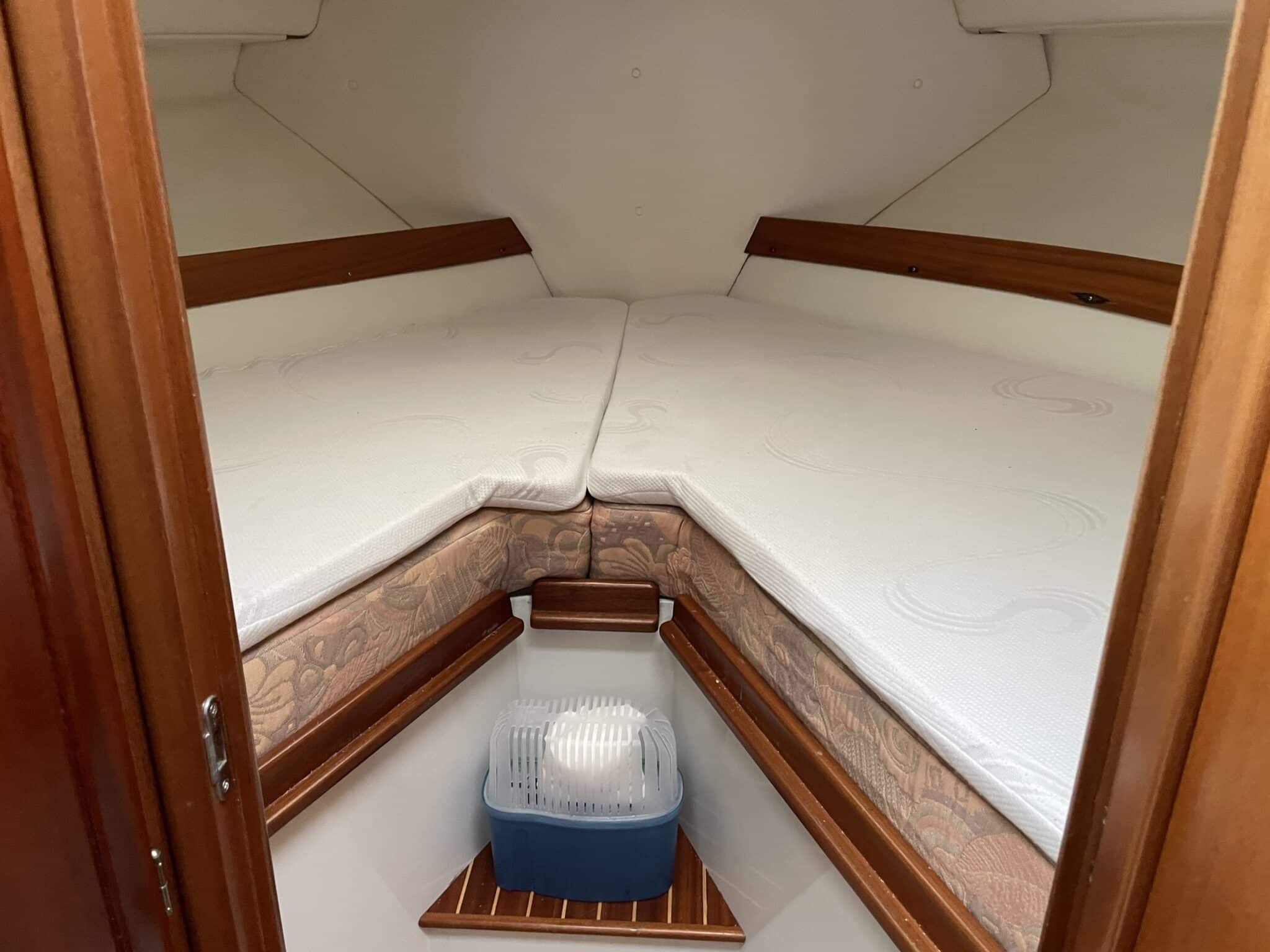 Forkahyt med dobbelt seng. Toilet med vacum toilet koblet til holdingtank. Agterkahyt i BB side med dobbelt seng.